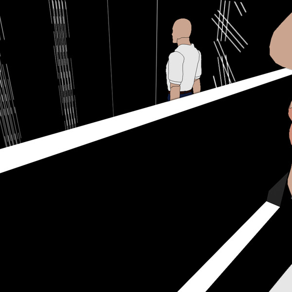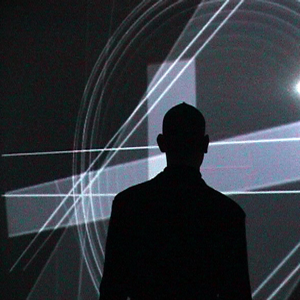 Scenario #2: The recipient settles right between the left and right projection, thus causing an image and sound synchronisation. As soon as he leaves the centre, the loops shift into the respectively opposite direction. He plays through a tonal system in the projection in front of him.